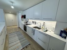 Rakennus on valmistunut 2016 ja siinä on hissi. Asunto on 2. kerroksessa. Ratikkapysäkki on heti rapun oven edessä. Rediin (kauppakeskus, metro) ja Mustikkamaalle (ulkoilualue) on matkaa n. 350m kumpaankin. Käytettävissä on maksutta mm. kuntosali (hyvä taloyhtiön saliksi!), pesutupa ja kerhohuone kattoterassilla. Asunnossa on pyykinpesukone, tiskikone, jäähdyttävä ilmalämpöpumppu (mitä tuskin tällä vuokra-ajalla tarvii), sauna, iso parveke ja kaksi wc:tä. Kalustuksen ja varustuksen yksityiskohdista voidaan sopia. Esim. pinnasänky ja syöttötuoli löytyy tarvittaessa.