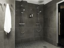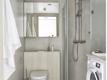Varusteet: Suihku, Lattialämmitys, Allaskaappi, Peilikaappi, Kiinteät valaisimet, Pesukone, WC