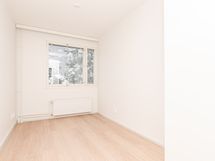 Vaaleasävyinen läpitalon kolmio Remontoitu vuokra-asunto Kontulassa Remontoidun, selkeän kolmion ikkunat aukeavat kahteen ilmansuuntaan ja tuovat luonnonvalon osaksi sisustusta. Lattia on vaaleaa tammilaminaattia ja seinät on maalattu valkoisiksi. Asunnon olohuone on avara ja helppo sisustaa omaan makuun sopivasti. Suojaisa, lasitettu parveke avautuu ilta-auringon puolelle.