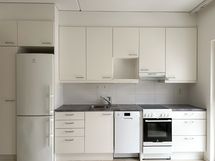 Kodissa on laminaattilattia ja maalatut seinät. Keittiössä on valkoiset kaapinovet metallivetimillä ja työtasot ovat harmaat sekä välitilan laatat valkoiset, keraaminen liesi ja astianpesukone kuuluvat varustukseen. Kylpyhuoneessa on tummanharmaa laatta lattiassa ja valkoiset seinissä sekä pyykinpesukoneelle on mahdollisuus.