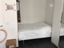 Tarvittaessa vuokrataan osittain kalustettuna: Sänky, sohva, pyykkikone, arkkupakastin, kenkäteline, TV.
