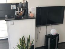 Asunto on neliöihin nähden tilava hyvän kokoisella avokeittiöllä ja täydellä varustelulla tiskikone ja pyykkikone mukaan lukien.