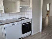 Suuri tiskipöytä, Paljon työskentelytilaa, Paljon kaappitilaa, Laminaattitasot, Liesituuletin, Jää-pakastinkaappi, Pesukoneliitos
