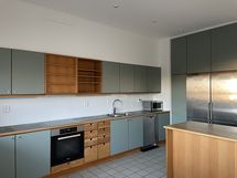 - Keittiössä induktioliesitaso, erillisuuni, liesituuletin, astianpesukone, 2 x jää-pakastinkaappi sekä mikro.