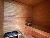 Kylpyhuone 2: Allastaso- ja kaappi, suihku, wc, pyyhekuivain ja sauna.