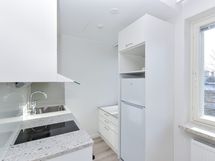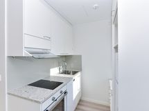 Sisätilojen ilme on rauhallinen ja antaa helposti täydennettävän, neutraalin taustan omalle tyylillesi. Keittiön harmoniset värit jatkavat alkuperäisten kivi-ikkunalautojen väritystä. Kaapistot ovat puukuvioitua valkoista laminaattia, taustalevy vaaleanharmaa ja tasot neutraalin väristä kivijäljitelmälaminaattia. Lattiat asuinhuoneissa ovat vaaleanharmaata tammilaminaattia. Täysin remontoidussa, raikkaassa kylpytilassa voi suihkutella huoletta: seinillä on perinteikkäät valkoiset 15 x 15 cm laatat ja lattiat on laatoitettu pienemmällä, vaaleanharmaalla laatalla. Märkätilojen ajattomilla, kotimaisilla Kide-kylpyhuonekalusteilla on 25 vuoden kestävyystakuu. Polkupyörille ja lastenvaunuille on maan tasalla sijaitsevat varastonsa, joista pääsee suoraan ulos. Taloyhtiöllä on myös kerhotila. Huoneistovarastot ovat talon alimmassa kerroksessa, lämpimissä tiloissa. Kohde lämpenee kaukolämmöllä ja lukitus on toteutettu iLOQ-järjestelmällä. Vuokralle tarjolla on myös noin 60 autopaikkaa, sähköistettyjä latauspaikkoja 4.