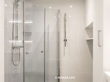 Suihku, Suihkukaappi, Pesukonevalmius, Lattialämmitys, Laattalattia, Laattaseinä, Allaskaappi, Peilikaappi
