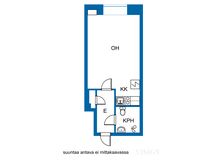 Kauniiden lautalattioiden ja harmonisen värimaailman ansiosta tämä koti on helppo sisustaa mieluisakseen. Suuresta ikkunasta avautuu kaunis puistomainen näkymä, ja samalla tämä luo pehmeää valoa koko huoneeseen. Näppärässä keittokomerossa onnistuu yhden hengen kokkailut mainiosti, ja huoneen puolelle onkin helppo mahduttaa niin sänky kuin ruokapöytäkin. Kylpyhuoneessa on valmiiksi pyykinpesukone.