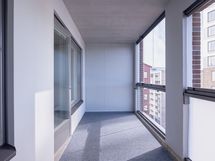 Huoneiston levyinen lasitettu parveke tuo lisää tilaa ja mahdollistaa nauttimisen ulkoilmasta aikaisesta keväästä pitkälle syksyyn.