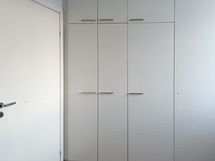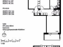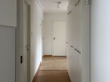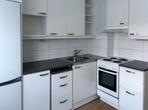 Lattiassa on laminaatti ja seinät ovat maalatut. Keittiössä on valkoiset kaapinovet metallivetimillä, harmaat työtasot ja valkoinen välitilan laatta. Astianpesukoneelle löytyy liitännät. Kylpyhuoneessa on harmaa massalattia ja valkoinen laatta seinissä sekä pyykinpesukoneelle mahdollisuus.