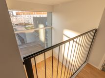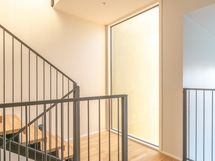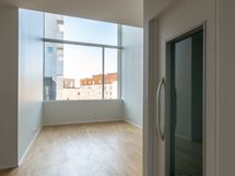 - Valoisa, Korkeat huoneet, Korkeat ikkunat, Paljon ikkunoita, Kattoterassi, Erkkeri, Sälekaihtimet, Ikkunasyvennykset, Hyvä äänieristys, mustat lasiovet,