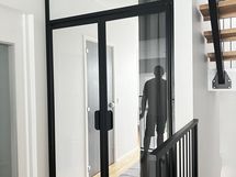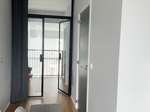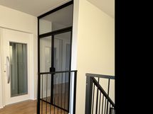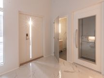 - Säilytystilaa, Vaatehuone, Tilaa ulkoiluvälineille, Tilaa pyykeille, Vaatehuone asennettu myöhemmin, kuvasta poiketen mustat lasiovet ovat maitolasia, asennettu jälkikäteen liukuovikaapisto,