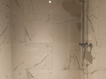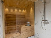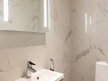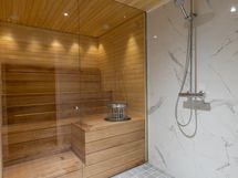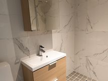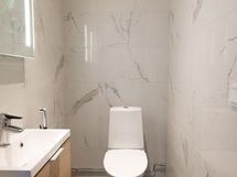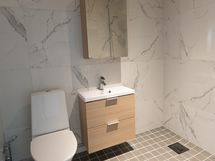 - Suihku, Suihkuseinä, Useita suihkuja, Pesukonevalmius, Laattalattia, Laattaseinä, Erillinen WC, Lattialämmitys, Allaskaappi