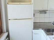 - Keittiön varusteet: Jääkaappipakastin (jenkkikaappi) ja liesi. Työtason materiaali: Laminaatti.