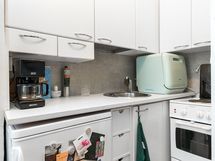 Yksiö Lauttasaaressa hyvien kulkuyhteyksien ääreltä. Kylpyhuoneeseen mahtuu pesukone ja keittiössä on pöytäastianpesukone.
