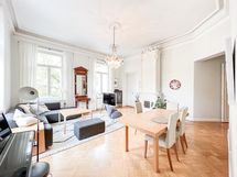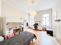 Toisen kerroksen, sykähdyttävässä huoneistossa on näkymiä kolmeen eri suuntaan ja kaksi erillistä sisäänkäyntiä, joista toinen on esteetön. Laatu ja tunnelmallisuus kulkevat läpi jokaisen tilan. Koristeelliset kakluunit ovat jo eläköityneet varsinaisesta tehtävästään, mutta kaunistavat kotia olemuksillaan. Pohjaratkaisussa on ihastuttava vanhanaikainen piirre: lähes kaikki huoneet ovat läpikäveltäviä ja suurimman osan huoneista yhdistää toisiinsa upeat puiset pariovet.