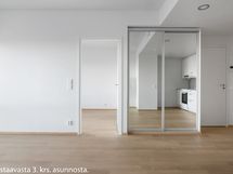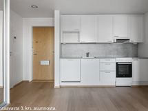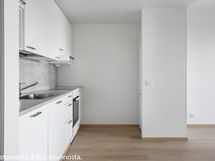 Lisätilaa lasitetulla parvekkeella Raikas vuokra-asunto Verkkosaaressa Kotoisan kaunis kaksio on helppo sisustaa kodiksi. Olohuone ja keittiö ovat yhtenäistä avaraa tilaa, ja niiden jatkeena on reilunkokoinen, lasitettu parveke. Makuuhuoneessa on reilusti tilaa vaatesäilytykselle erillisessä vaatehuoneessa. Eteisen komerot ovat valkoisia ja ikkunoissa on valmiina sälekaihtimet. Lattia on vaaleaa tammilaminaattia ja seinät on maalattu valkoisiksi. Keittiökaapistot ovat raikkaan valkoiset ja ylä- ja alakaappien välinen tila sekä työtaso ovat harmaata laminaattia. Varustukseen kuuluu astianpesukone, keraaminen liesi ja jääkaappipakastin. Kylpyhuoneessa on valkoiset SATOn Kide-malliston kalusteet. Seinät ovat valkoista laattaa ja lattia on harmaa. Pesukoneelle ja kuivausrummulle on paikka.