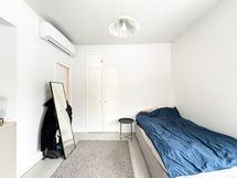 Kaunis vaalea lautalattia tuo myös kivaa persoonallisuutta tähän kotiin tuoden kivaa vanhan ajan tunnelmaa muuten moderniin yleisilmeeseen. Asunnon saa neutraalien pintojen ansiosta sisustettua mieleisekseen helposti. Huoneessa on ilmalämpöpumppu, joka viilentää ihanasti kuumina kesäpäivinä.