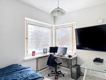 Tämä koti suorastaan tulvii valoa sillä ikkunoita on kahteen eri ilmansuuntaan. Kaunis kulmaikkuna tuo tunnelmaa tähän kotiin kuin myös ikkunalaudat, joita pystyy hyötykäyttämään hyvin myös sisustuksessa.