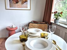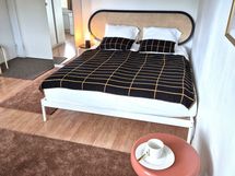 This stylish furnished apartment is located in one of Helsinki's most sought-after areas, Katajanharjuniemi in Lauttasaari. The windows face east towards the sea, and the apartment has a French balcony. The apartment is less than a 5-minute walk from the metro station and a local shop, and there are light traffic routes to Kamppi, Otaniemi, and Meilahti, which are less than 20 minutes away by bike. The area is known for its safety and diverse sports opportunities.