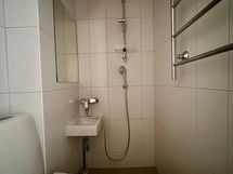 - wc, suihku, lavuaari, peili, valo, lämmin pyyhepatteri seinällä, suihkuverhotank, pyyhekoukut