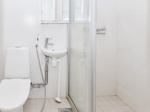 Asuinhuoneiden lattiamateriaalina on laminaatti, kylpyhuone on kokonaisuudessaan kaakeloitu. Keittiössä on jää-pakastinkaappi ja varaus astianpesukoneelle.