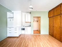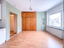Tässä 6. kerroksen asunnossa on tehokas ja selkeä pohjaratkaisu. Vaaleat neutraalit pinnat mahdollistavat asunnon helpon sisustamisen mieleiseksi. Ikkunoista avautuu rauhalliset näkymät sisäpihalle. Näppärässä avokeittiössä onnistuu arjen kokkailut ja sielä on tilaa työskennellä. Kaappitilaa löytyy kivasti huoneen puolelta. Kylpyhuoneen puolelta löytyy pesukoneliitäntä.