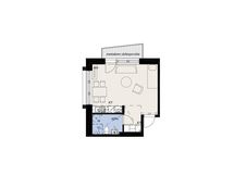 The apartments are equipped with high quality materials, such as laminate floor and tiling in the bathroom. The kitchen is equipped with a dishwasher, a fridge-freezer (some of the studios have a fridge with a freezer compartment), and an oven with a ceramic hob. The light coloured materials bring lightness to the apartment. Some apartments have a balcony and some have a french balcony.