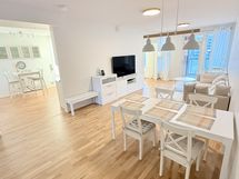 Asunnossa on oma sauna, kaksi WC:tä, lämmin varasto, iso parveke, pesukone ja astianpesukone. Asunto vuokrataan pääasiassa kalustettuna, mutta myös omat huonekalut ovat mahdollisia sopimuksen mukaan.