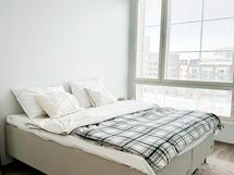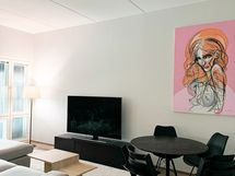 Vuokralle tarjotaan kokoaan tilavampi vuonna 2023 valmistunut kolmio, jossa on reilun kokoinen saarekkeella keittiöksi ja olohuoneeksi jaettu oleskelutila. Ylimmän kerroksen parvekkeellinen asunto, josta avautuu suuret ikkunat. Kokoa asunnolla on 65m2. Vaatehuoneet lisäävät säilytystilaa ja parveke on kuin ylimääräinen huone.
