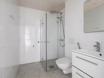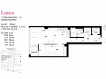 Koti on hyvänkokoinen kaksio ja sopii hyvin, vaikka kahdelle hengelle. Pohjaratkaisu on käytännöllinen ja erillinen irtainvarasto on sijoitettu asunnon yhteyteen. Kylpyhuone on heti sisään tultaessa eteisessä. Oleskelutila avautuu eteiskäytävän jälkeen omaksi avaraksi kokonaisuudekseen ja sen seinustalla on toimiva, L-mallinen avokeittiö. Viherhuone muuntuu omaksi tilakseen tai luontevaksi osaksi kotia sivuun siirtyvien lasiovien ansiosta. Makuuhuoneen isot ikkunat avautuvat viherhuoneeseen, jonka läpi pystyt esteettömästi ihailemaan maisemia. Makuuhuone on erotettavissa oleskelutilasta liukuovien ansiosta.