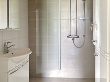 Lattiassa on tammensävyinen laminaattilattia ja seinät ovat maalatut. Keittiössä on valkoiset kaapinovet metallivetimillä ja työtasot ovat puunsävyiset sekä välitilan laatoitus valkoinen, astianpesukoneelle löytyy liitännät. Kylpyhuone on laatoitettu valko-harmaalla sävyllä, pesutornille on mahdollisuus.