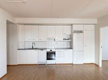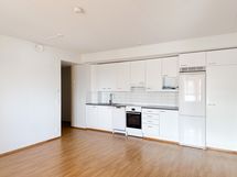 Kodissa on laminaatti lattia ja seinät ovat maalatut. Pyykinpesukoneelle löytyy liitännät kylpyhuoneesta. Vuokraan kuuluu myös astianpesukone. Keittiössä löydät valkoiset kaapistot metalli vetimillä, harmaat työtasot.