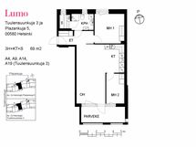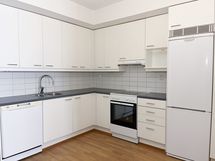 Asunnossa on kaunis tammensävyinen laminaattilattia ja maalatut seinät. Keittiössä on valkoiset kaapinovet metallivetimillä, työtasot ovat harmaat ja välitilan laatat ovat valkoiset. Varustukseen kuuluu mm. astianpesukone ja jääkaappipakastin. Kylpyhuoneessa on harmaa laatta lattiassa ja valkoiset laatat seinissä sekä pyykinpesukone mahdollisuus.