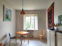 - Yksi olo/makuuhuone kadun puolella 18 m2, toinen olo/makuuhuone pihan puolella16 m2, keittiö, ruokailutila, hyvän kokoinen kylpyhuone suihkulla ja eteishalli joka myös on erittäin tilava.