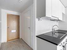 Tämä moderni kolmannen (3) kerroksen yksiö, jossa on kaksion ominaisuudet on kulmahuoneisto useine ikkunoineen. Jo eteiseen astuessasi sisään on ikkuna antamassa luonnon valoa.