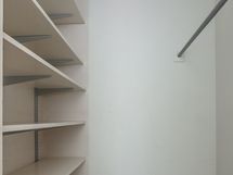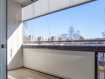 Huone on tilava ja antaakin mahdollisuuden monenlaiseen huonejärjestelyyn. Samoin keittiökomerossa on hyvin kaappi- ja toimintatilaa. Lasitettu parveke tuo kivasti lisätilaa läpi vuoden. Lisäksi asunnossa on erillinen vaatehuone.