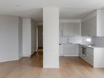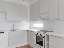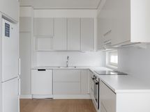 Three-bedroom family apartment available for rent on the 4th floor. All bedrooms have closet space, and there is additional closet space in the hallway. The apartment has its own sauna, where you can enjoy a steam bath whenever you feel like it, and cool off on your own balcony. The kitchen opens onto the living room, which has space for a table and sofa. The rent includes a 50M broadband connection.