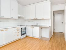 Parvekkeellinen kaksio Itäkeskuksessa Valoisa vuokrakoti palvelujen lähellä Ylimmän kerroksen kaksiossa on selkeä pohjaratkaisu ja mukava tunnelma. Oleskelutila on helppo sisustaa omien tarpeiden mukaan ja parvekkeella voit nauttia hetkestä ulkona vaikka aamukahvin äärellä.