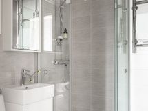 Keittiön varustukseen kuuluu mm. yhdistetty uuni ja mikro, sekä astianpesukone. Lattialla tammiparketti. Suuremmassa makuuhuoneessa reilusti tilaa, pienempi makuuhuone toimii mainiosti lastenhuoneena, vaatehuoneena tai työhuoneena, josta mahtavat näkymät Kallion kirkon suuntaan.