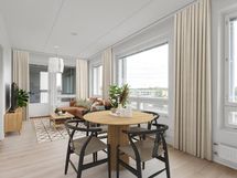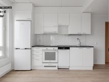 Bright and well-designed apartments with large windows and glazed balconies. The apartments have light oak-toned laminate flooring and a fully equipped kitchen with quality appliances: dishwasher, induction stove, built-in oven and fridge-freezer. The bathrooms have connections and space for a washing machine and tumble dryer. The bathrooms are also equipped with comfort underfloor heating, which is connected to the apartment's electricity.