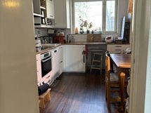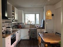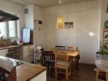 Tosi kotoisa, valoisa ja kivasti kalustettu asunto. Läpihuoneisto, saadaan ikkunat auki etelä- ja pohjoissuuntaan. Aurinko paistaa kesällä makuuhuoneisiin klo 11-17 välillä. Ihanan viileä keittiö kesällä. Kivat naapurit.