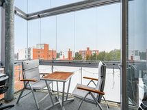 Ylimmän kerroksen valoisa kolmio saunalla ja lasitetulla parvekkeella – Vuosaari
