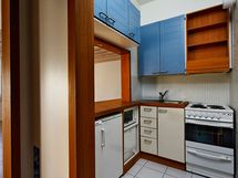 Asuinhuoneiden lattiamateriaalina on laminaatti ja lattialämmitetty kylpyhuone on kauttaaltaan kaakeloitu. Eteisen komerossa on tilaa säästävät liukuovet. Kodikkaassa, hyvinvarustellussa keittokomerossa on mosaiikkikaakelointi, halogeenivalaistus, astianpesukone sekä jääkaappi ja pakastin.