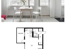 32 neliön yksiö viilentävällä ilmalämpöpumpulla Reimarlassa