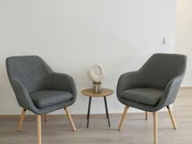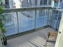 The large living room, open kitchen, and dining area create a stunning, open, and cohesive living space that flows throughout the apartment, making it feel larger than it is. On the living room side, there is a glazed balcony, and a charming French balcony opens up as an extension of the beautiful dining area. The decor in this home is fresh and stylishly understated. The floor laminates are light wood tones, and the furniture is modern and lightweight. The living room features a comfortable sofa, armchairs, and a television.