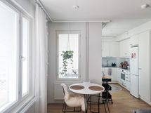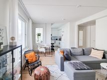 Viidennen kerroksen koti on ajattoman tyylikäs ja neliöt on nykyaikaisessa asunnossa mietitty tarkkaan. Lattiamateriaalina on tammiparketti, märkätiloissa keraaminen laatoitus ja säädettävä lattialämmitys. Ikkunoissa on sälekaihtimet ja parveke on lasitettu. Keittiön varustukseen kuuluu jääkaappi-pakastin, kalusteuuni, induktioliesi, astianpesukone ja integroitu mikroaaltouuni. Makuuhuoneessa on seinänmittainen kaappirivistö.