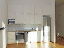 - Varusteet: jääkaappipakastin, astianpesukone, astianpesukoneliitäntä. Työtaso: laminaattitaso. Liesi: keraaminen liesi, liesituuletin. avokeittiö. Ruokailutila: olohuoneen yhteydessä