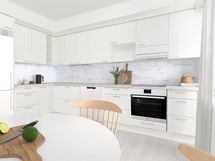 Ajaton yleisväritys helpottaa asunnon sisustusta. Seinät on maalattu valkoiseksi ja kattopinnat ruiskutasoitettu. Komerokalusteissa on valkoiset ovet, eteisessä valkoiset peililiukuovelliset kaapistot. Joissakin eteisissä on lisäksi ovelliset komerot. Olohuoneen, makuuhuoneen, eleisen, vaatehuoneen ja keittiön lattiamateriaalina on vaalean harmaa tammilaminaatti ja jalkalistat ovat valkoista puuta. Asuinhuoneiden komerokalusteissa on mattavalkoiset mikrolaminaattiovet. Sekä seinät että katto ovat valkoiseksi maalattuja. Keittiön työtasot ovat marmorikuvioitua laminaattia ja välitila komposiittilevyä. Keittiökaapiston ovet ja laatikostojen etulevyt ovat mattavalkoista mikrolaminaattia. Upotetut tiskialtaat ovat ruostumatonta terästä. Keittiökalusteiden välitilassa on pistorasioilla varustetut työpistevalaisimet. Keittotilassa on 4-osainen induktiokeittotaso sekä 60 cm kalusteuuni, valaisimella varusteltu liesikupu liesitason päällä, jääkaappipakastin ja 60 tai 45 cm leveä astianpesukone. Mikroaaltouunille on tilavaraus. Kylpyhuoneen seinät on laatoitettu valkoisella, kiiltävällä 20 x 40 laatalla. Kylpyhuoneen ja saunan lattia on laatoitettu keraamisella, tumman harmaalla 10 X 10 laatalla ja katto paneloitu puupaneelilla. Kalustukseen kuuluu massiivilaminaatista valmistettu allaskaappi ja peilikaappi valaisimella, osassa asuntoja on myös pyykkikaappi. Kylpyhuoneessa on pyykinpesukoneliitäntä sekä tilavaraus pesukoneelle. Suihkutilassa on suihkuseinä ja suihkuverhokisko. Märkätilat on varustettu sähköisellä mukavuuslämmityksellä, joka on kytketty asuntokohtaiseen sähköön. Parvekkeet on varustettu avattavilla parvekelaseilla, joten kesää voi jatkaa pitkään omalla, suojaisalla parvekkeella.