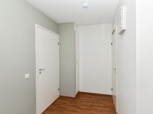 Asuinhuoneissa on punertavan ruskeat ja tyylikkäät laminaattilattiat ja kylpyhuone on kaakeloitu. Keittokomerossa on jää-pakastinkaappi ja nelilevyinen sähköliesi.